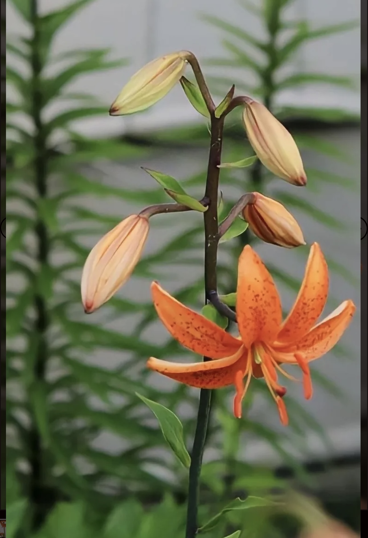 ‘Brunswiek’ II(c/c-d) Parentage: L. × dalhansonii Terrace City Group X tsingtauense R: O. Beutnagel (pre 1998), N: O. Beutnagel, REG: ICRA (1999) Fls orange-yellow with small red spots over the whole fl.; pollen orange-red. Lvs dark green. Stems 1 m, dark green to almost black, with 30 or more fls. Late June. Syn.: ‘Brunswick Beauty’. (Published in German Lily Group sales list, 1998. The epithet is the old spelling of Braunschweig, where the raiser lives. Often called ‘Brunswick Beauty’ in N America.)