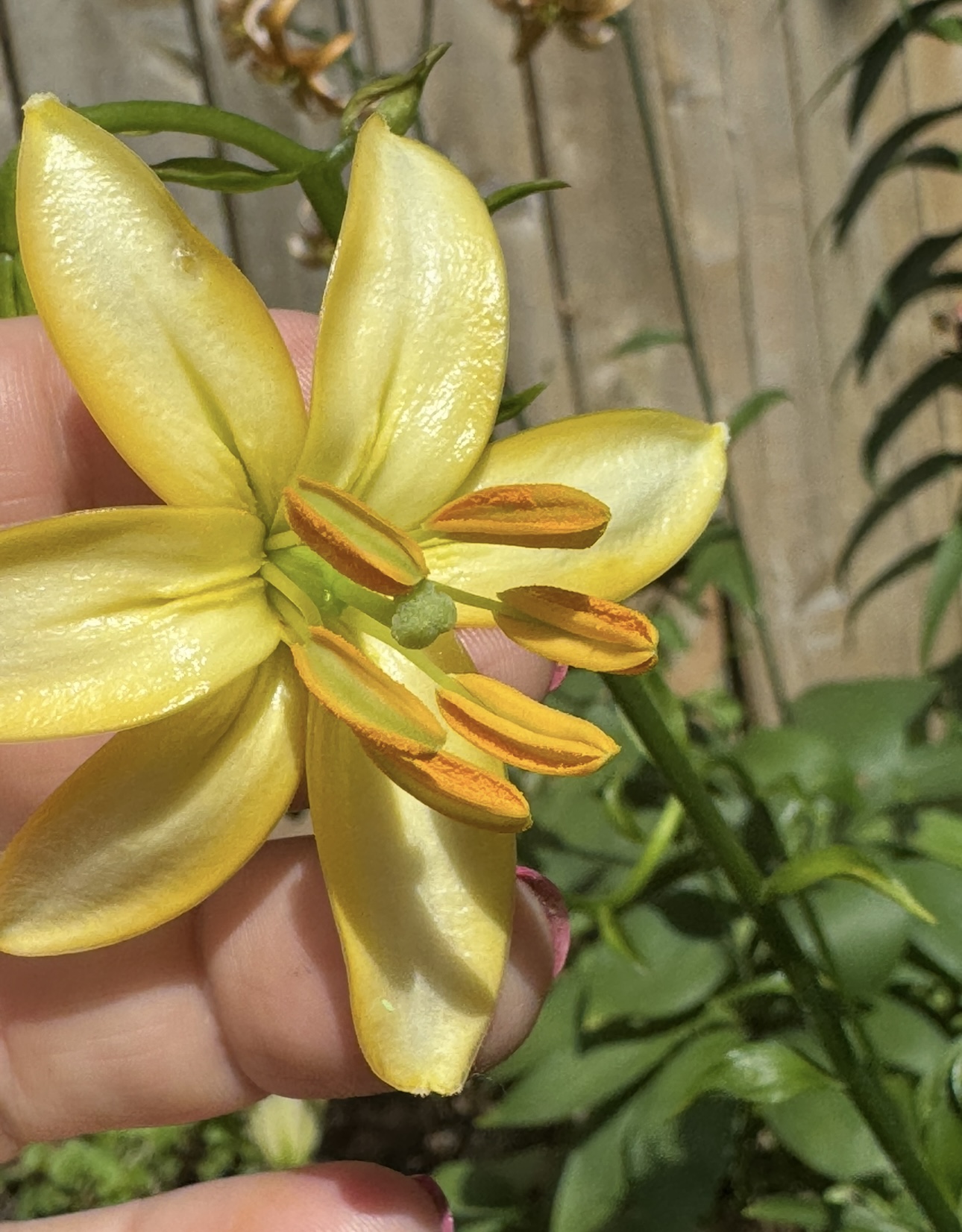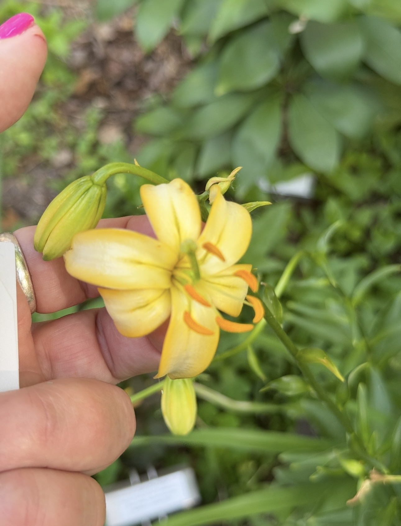 L. martagon var. flaviflorum ( flavia ) meaning golden or blonde , is the most rarest of L. martagon varieties. Not much is known except what I have been told. There are years here that I see them scattered in the woodlands and other years not so many. I am believing that the wildlife eats the flowers by day and by night. They glow. Sometimes there is more yellow in the perianth and sometimes there are more spotted with purplish markings. Most are unspotted. With wild geographical distribution, of L. martagon species, it has led to many subspecies and varieties. This type was is proving to be a strong performer. The original owners had many friends from all over the world and this is one of the many that is within the collection here at Hartle-Gilman Gardens.