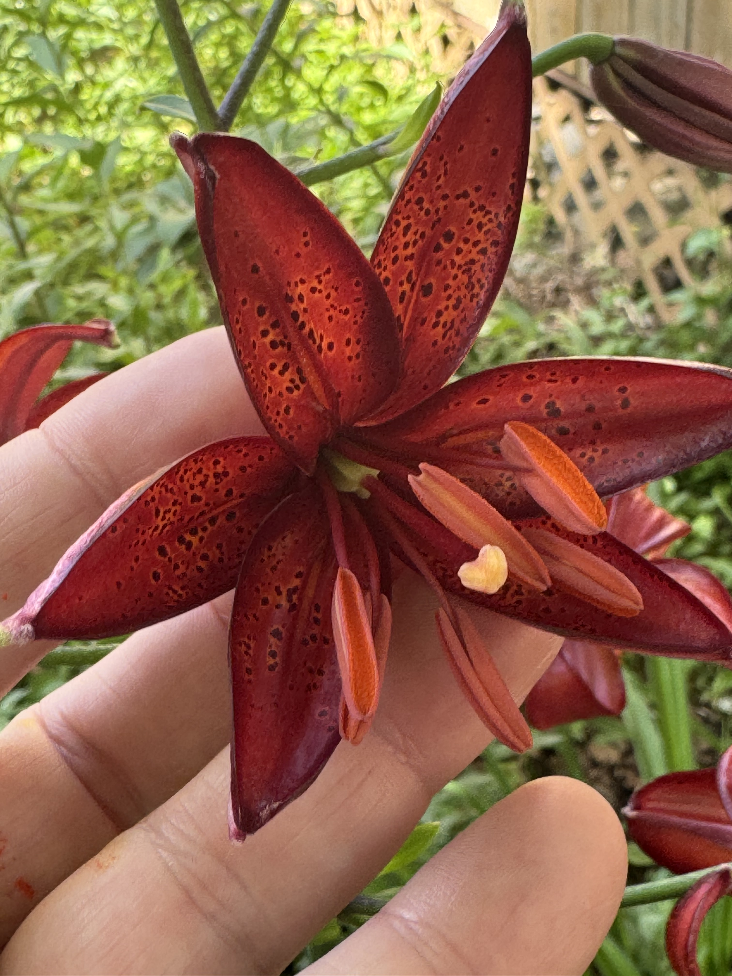 Lusher L. martagon var. cattaniae x L. tsingtauense. THE ONLY DIFFERENCE IS THAT LUSHER HAS A GREEN THROAT OVARY VS MAHOGANY BELLS HAS A YELLOW THROAT