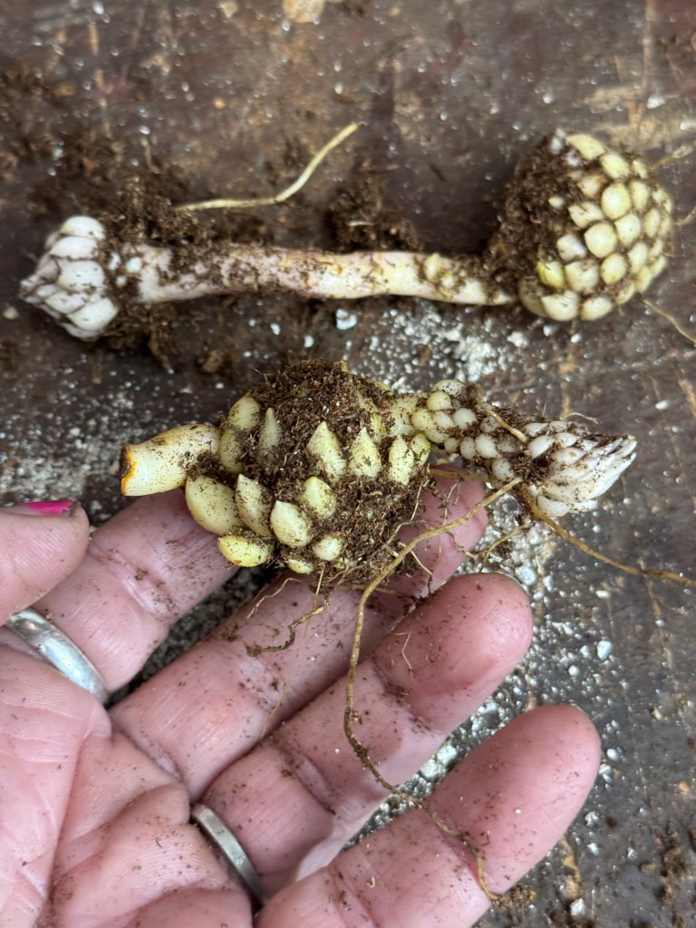 Characteristically labels as a ‘dogbone’ shape These are examples of ones that I am now sending out that have grown from seed started in 2022. I am packing them in peat to send off to a company in Minnesota that wants to enhance the walkways into their establishment with Native perennials .