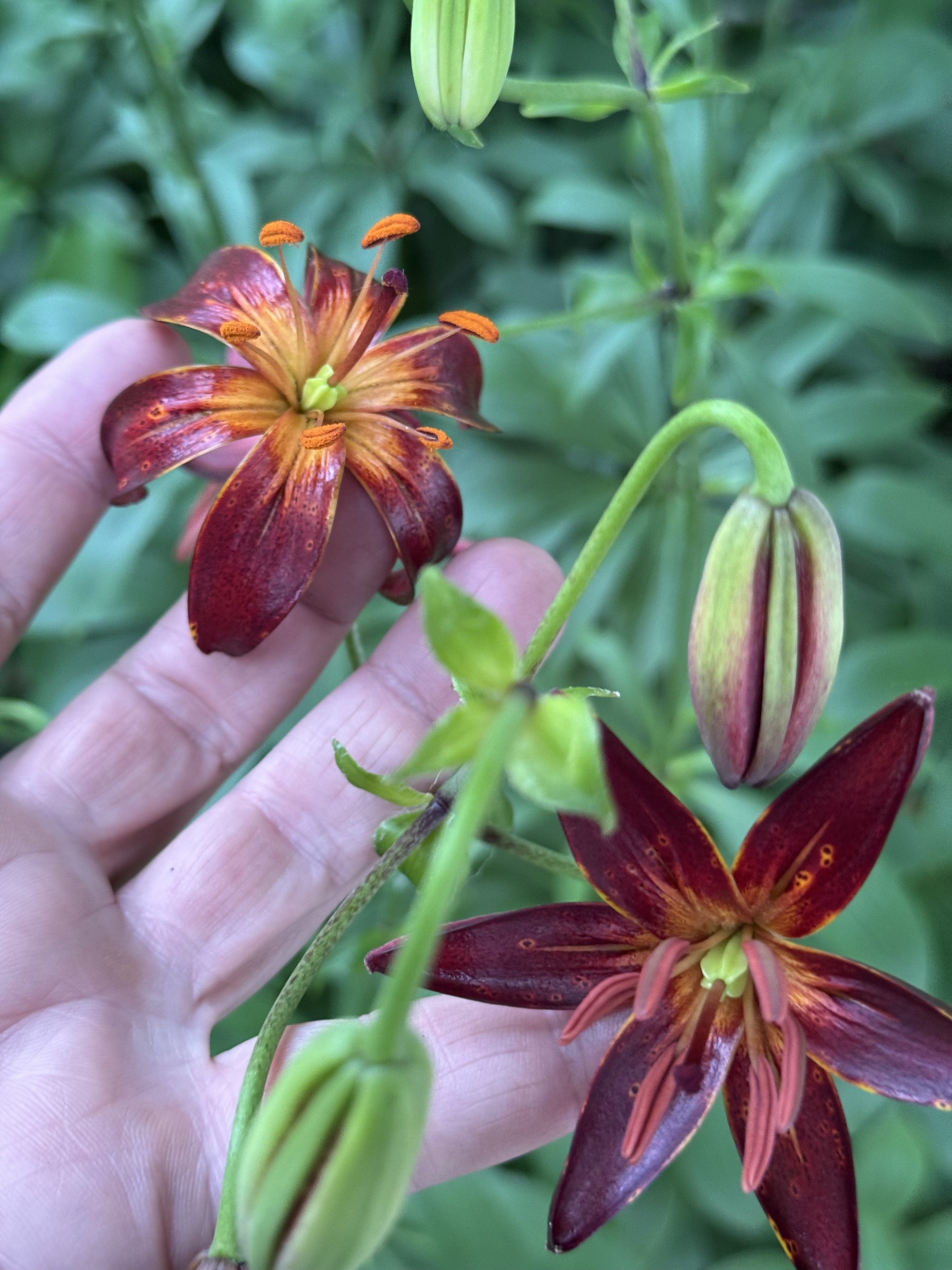 This was actually my very first martagon that I acquired. The dark brown, orange color had me on a chase ever since 2020. I will in the next year have lots of fun photos to share of ‘Furthermore’ Lily’s created by design and plan by my ideas, thoughts and lots of prayers…. My studies and program. Redman, L. medeoloides, L. martagon, L. distchum, and other lovely species are the foundation of ‘Furthermore’ …. more to come– I have a few that I am able to offer this season