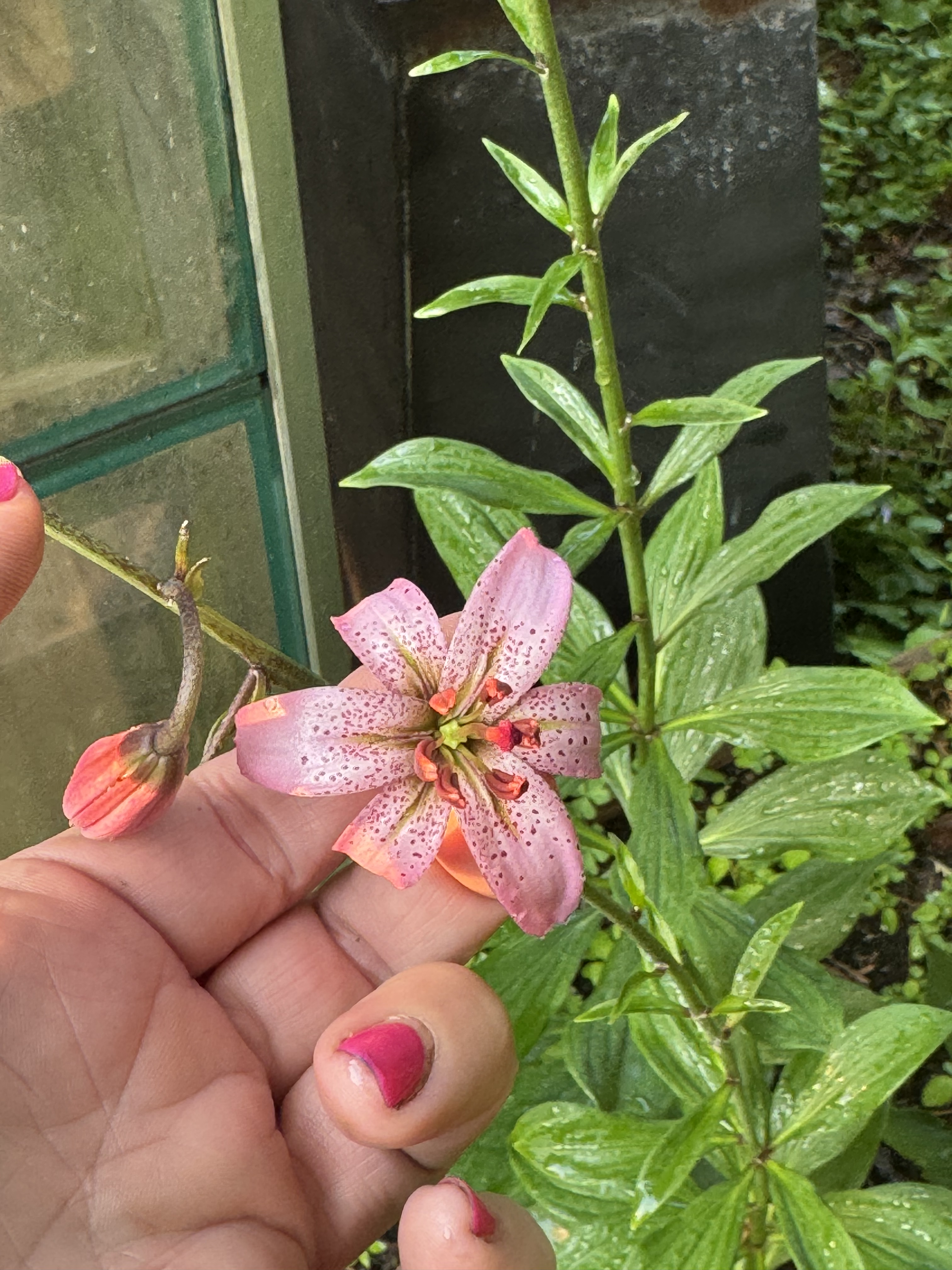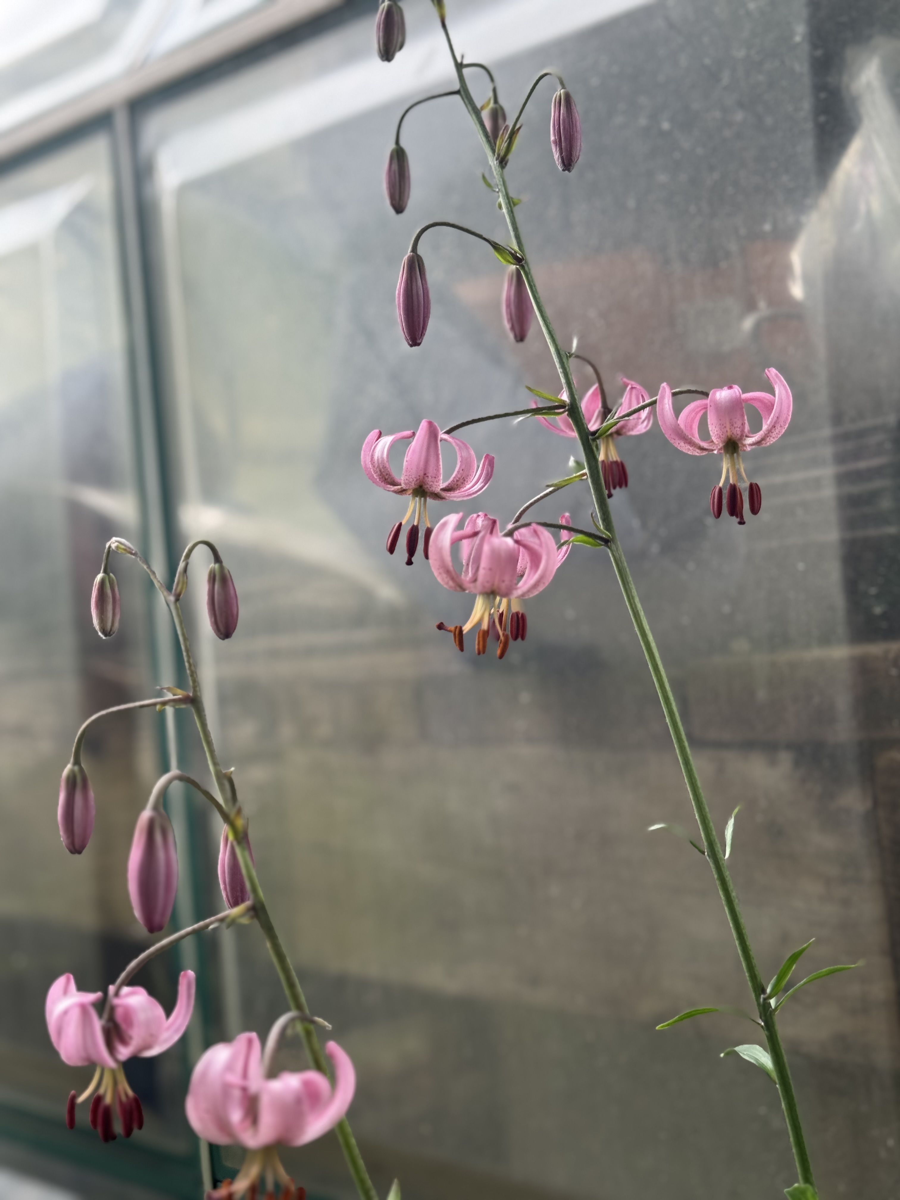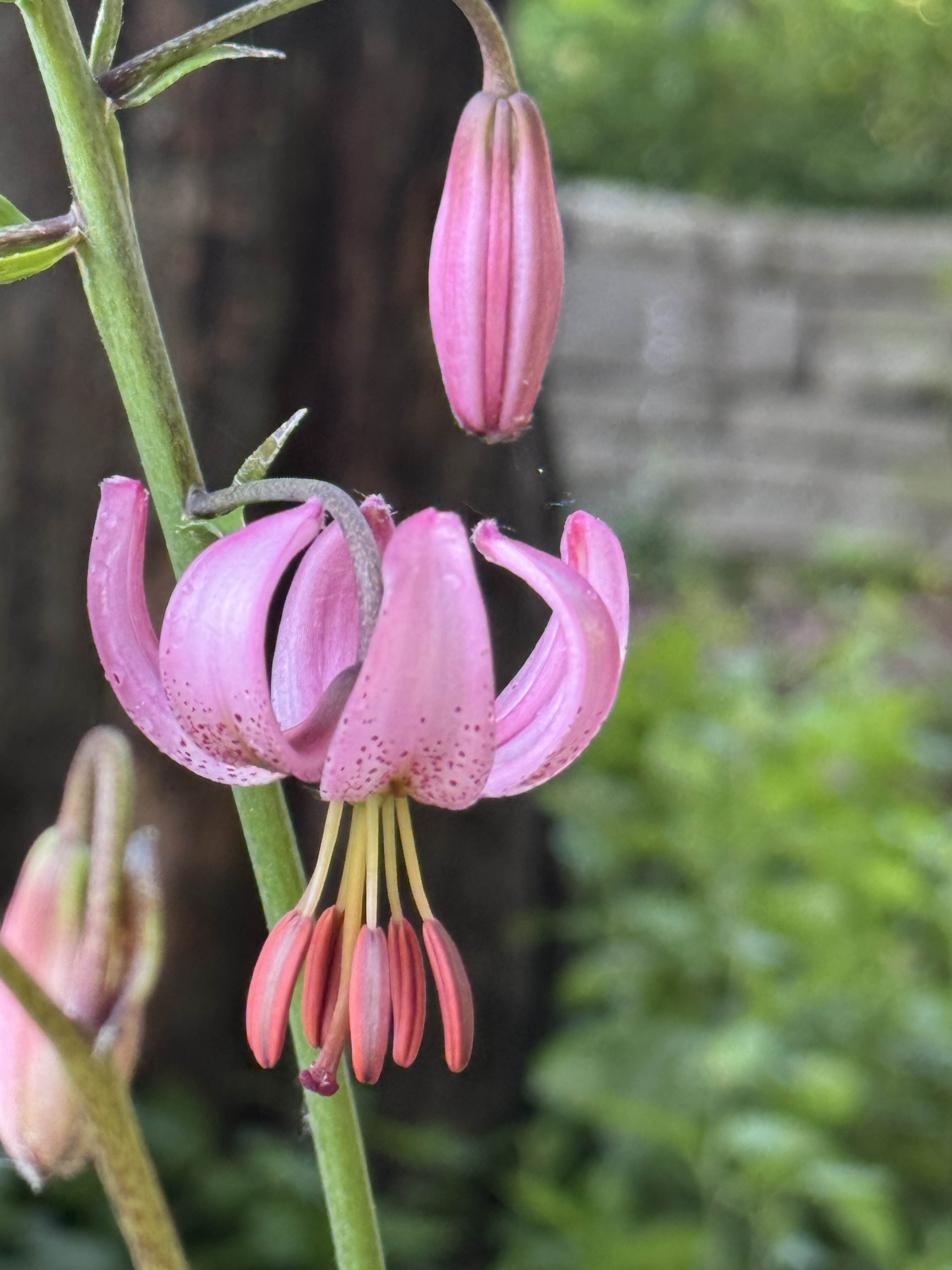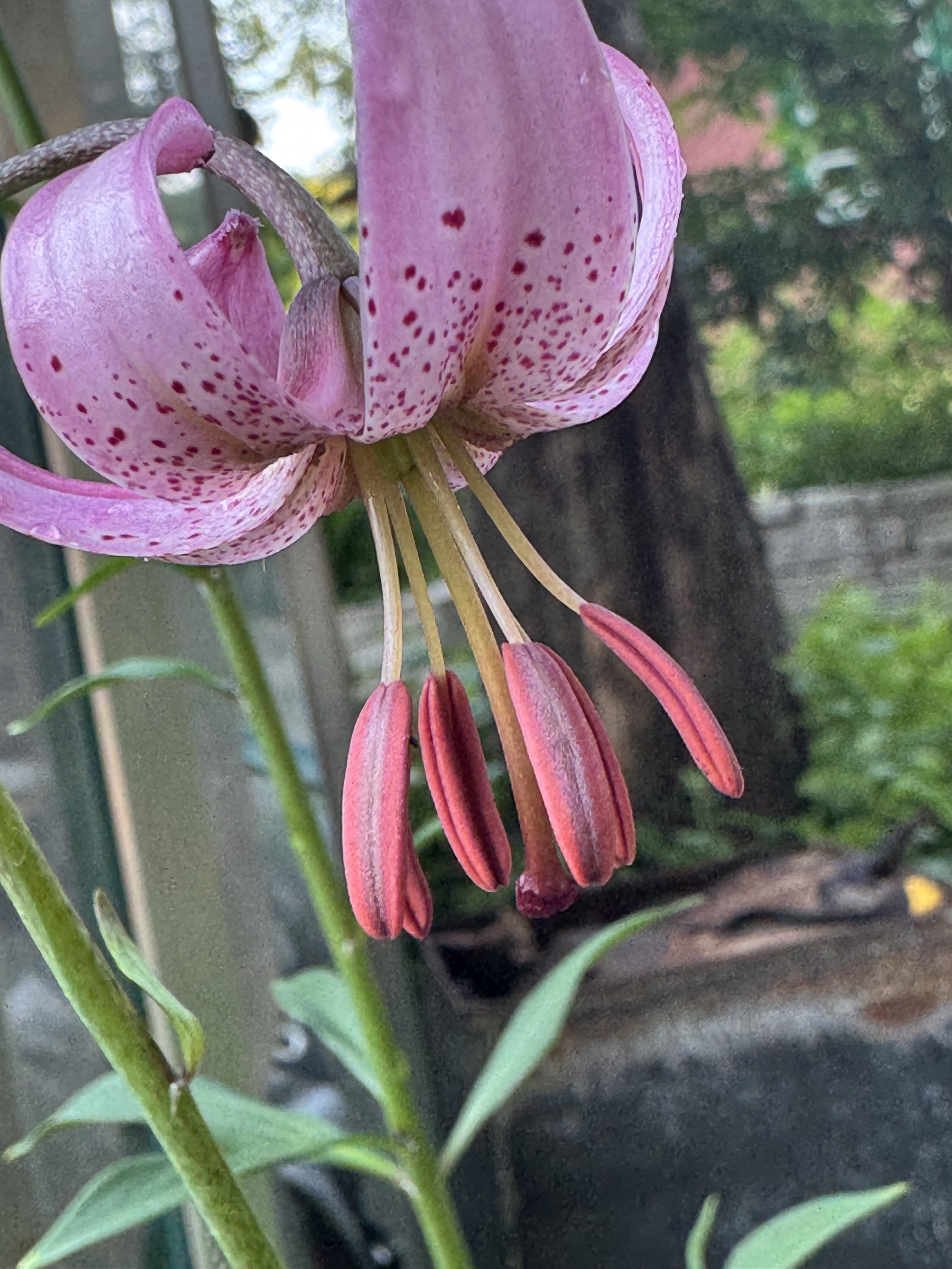 L.martagon var pilosiusculum (Species) Fuzzy Wuzzy ARE the buds, ( stem and leaves reflected also ) L. martagon var pilosiusculum