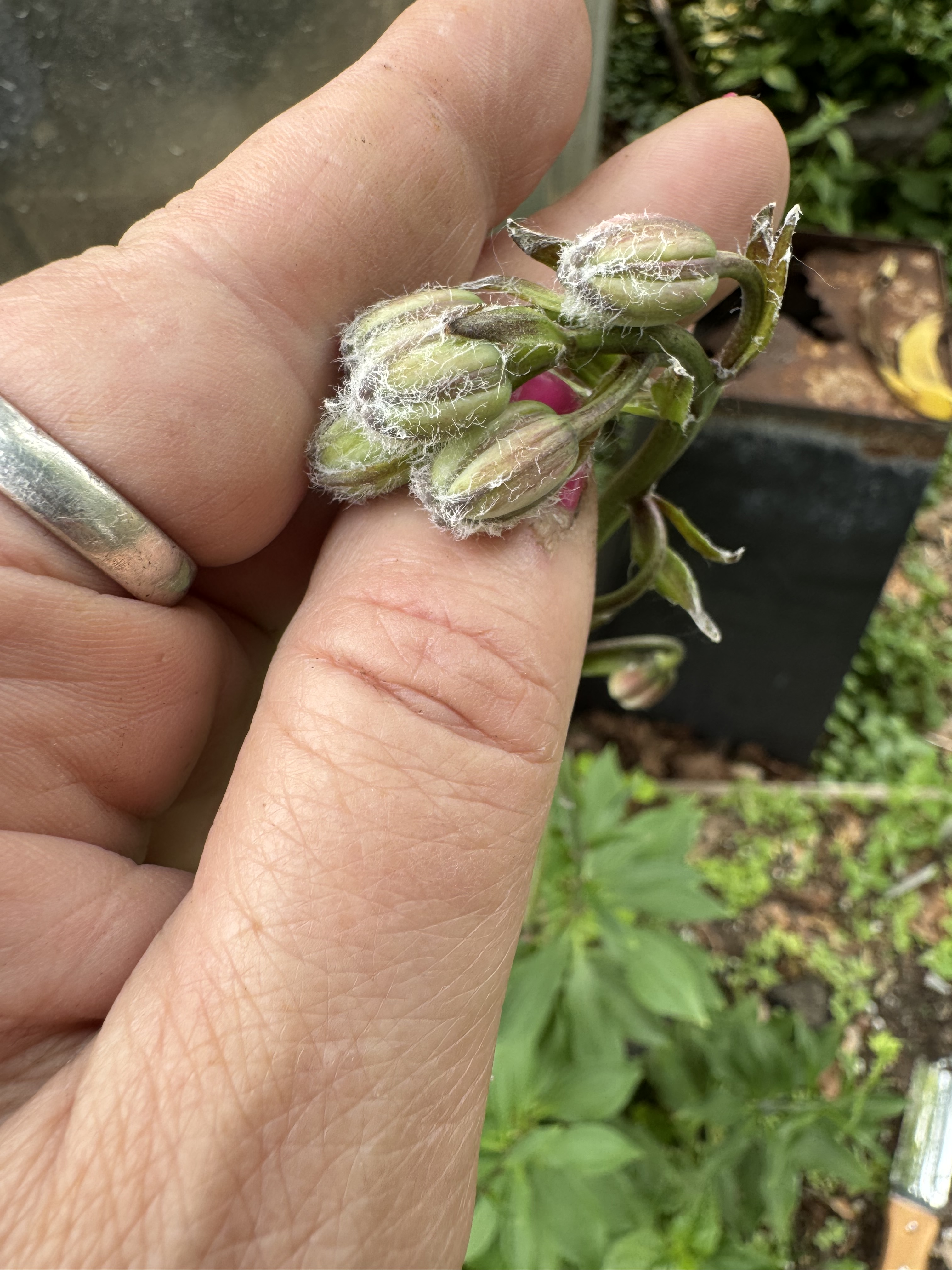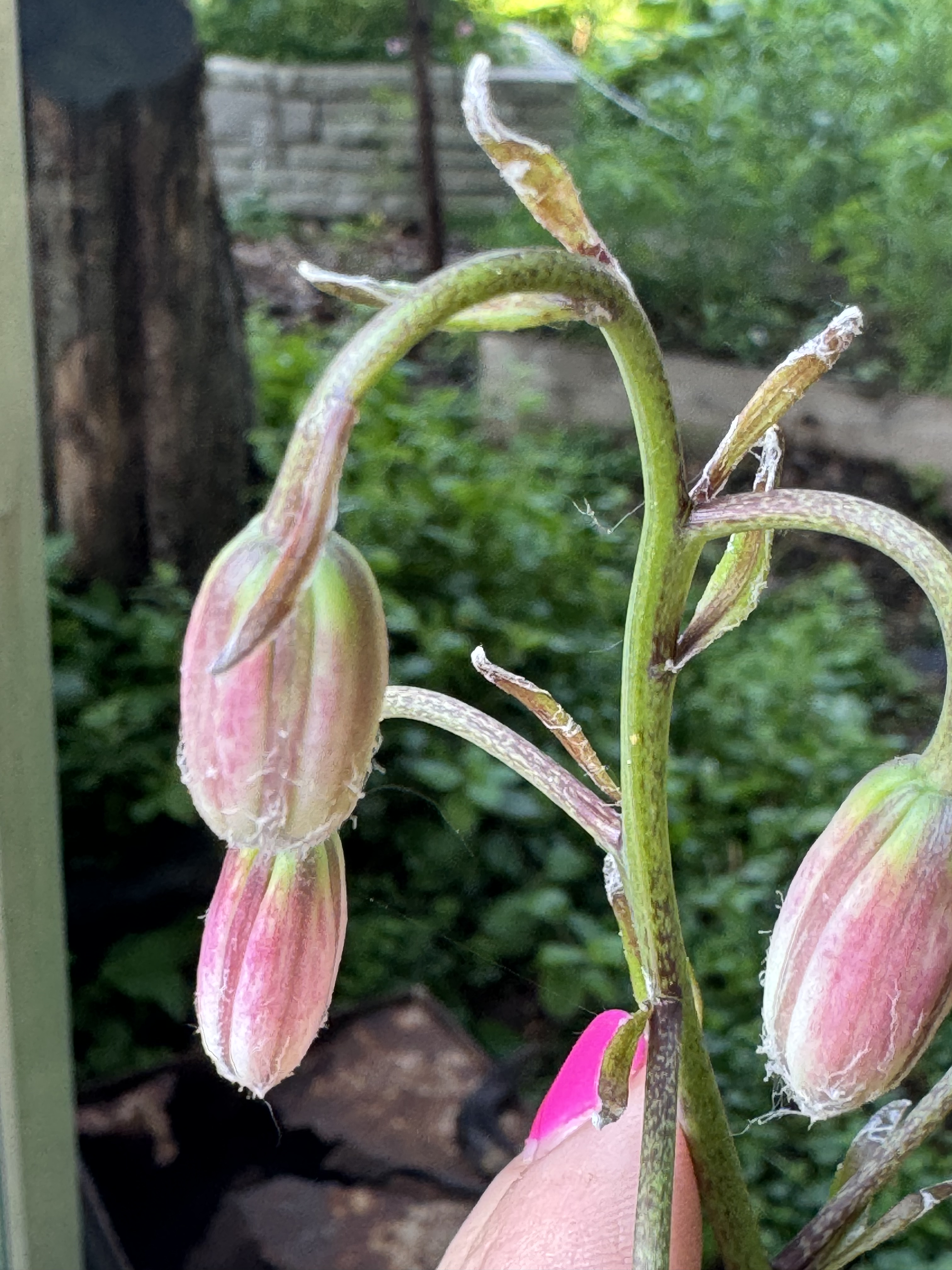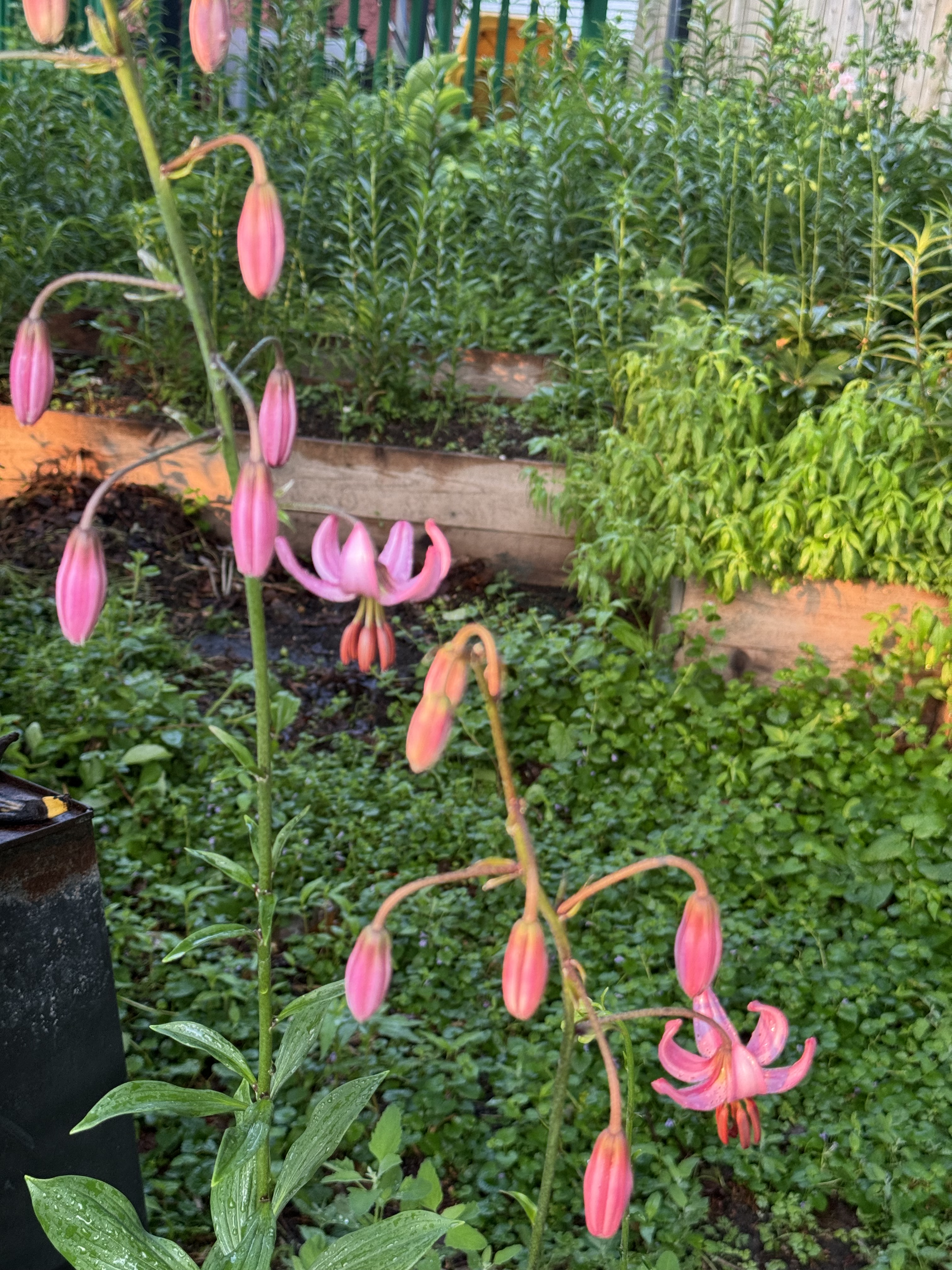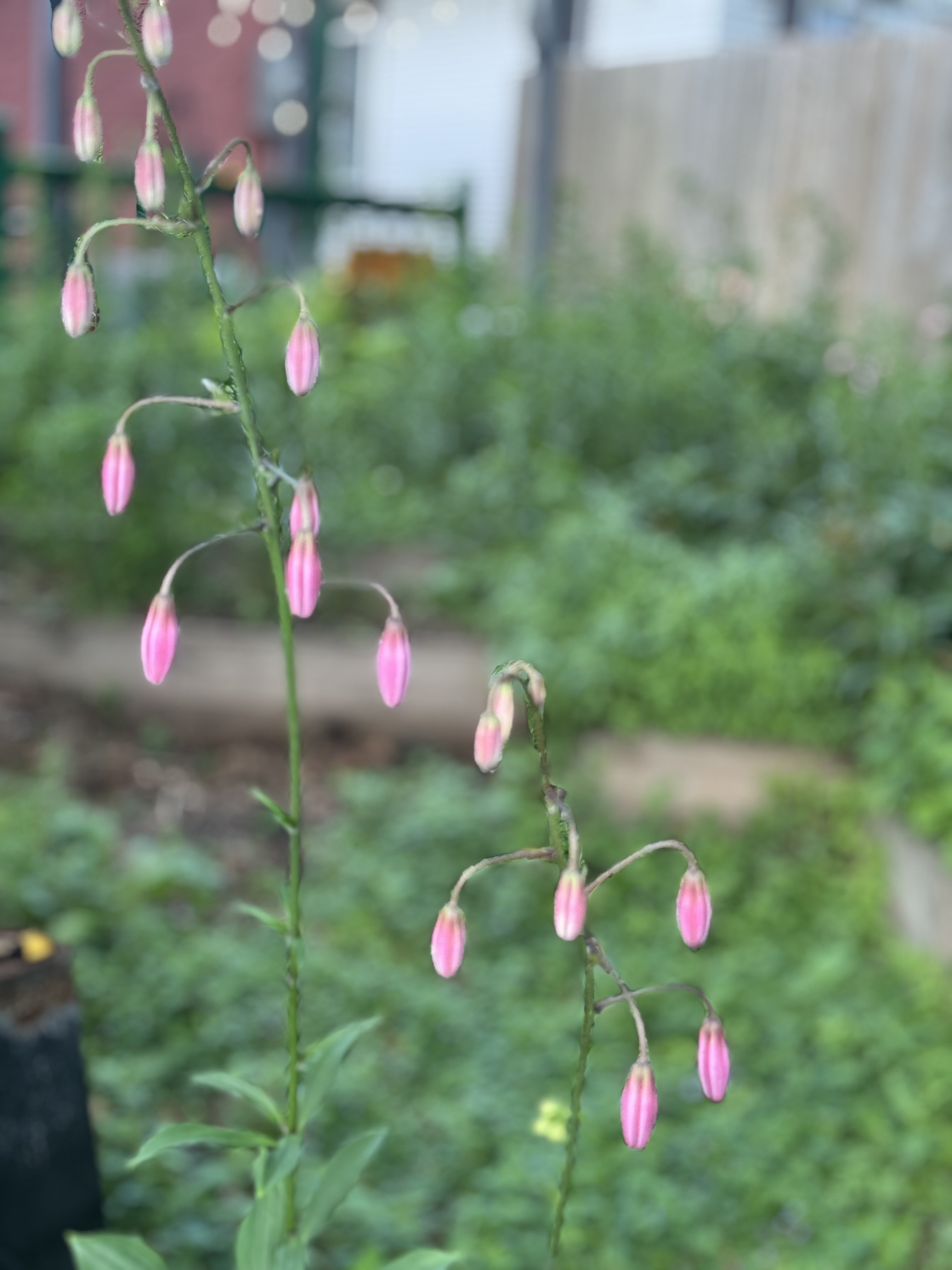 L.martagon var pilosiusculum (Species) Fuzzy Wuzzy ARE the buds, ( stem and leaves reflected also ) L. martagon var pilosiusculum
